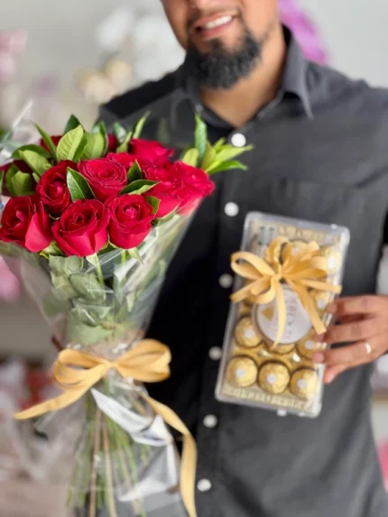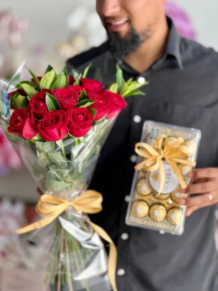Buquê Minimalista com 8 Rosas e Ferrero Rocher T4